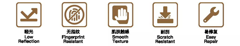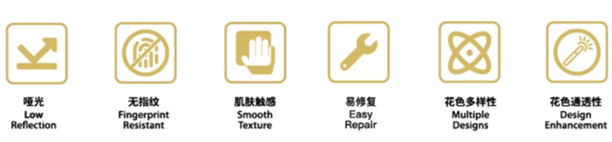 Tấm dán bảo dưỡng tia điện tử BODA là một vật liệu bề mặt mới, sáng tạo. Laminate chống bám vân tay là sản phẩm công nghệ cao đặc biệt được ưa chuộng trong hai năm qua. Sản phẩm áp dụng vật liệu bề mặt mới và công nghệ xử lý và xử lý bằng tia điện tử (EBC), nhờ đó bề mặt sản phẩm có khả năng chống bám vân tay, cảm ứng da em bé siêu mềm, chống mài mòn, sửa chữa và các chức năng mới khác. BODA M.S. các tấm nano được phủ một lớp nhựa acrylic thế hệ mới và được bảo dưỡng bằng các chùm điện tử đặc biệt. Giải pháp bề mặt mới này mang đến trải nghiệm tuyệt vời chưa từng có cho nội thất.